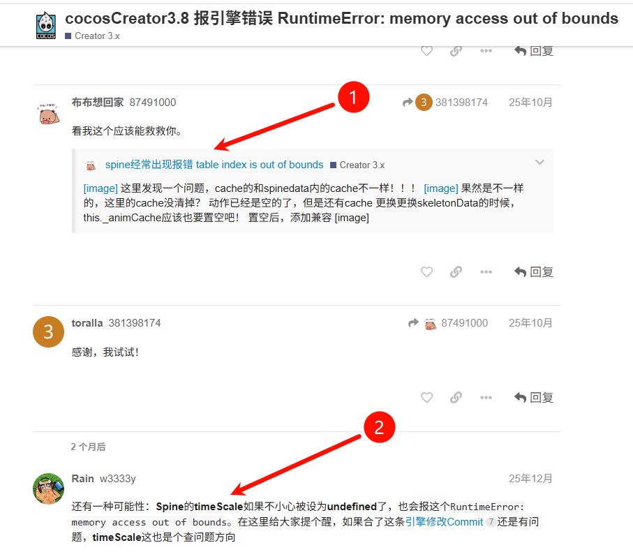 项目经历了3.8.2,3.8.6,现在升级到3.8.7,但是出现了一些问题很头疼,spine资源的制作为3.8.9,部分spine资源运行后出现内存溢出的情况(如图所示):screenshot-20260126-135713