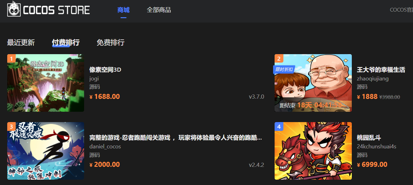 直到前几天发现现在卖上cocos源码了 就这两个月时间上了大量源码(这个时间节点很敏感啊)