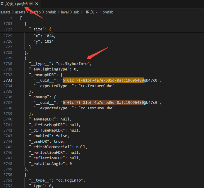 打包时发现预制体很大,2d关卡预制体里面也没啥东西,排查时发现这个预制体里有个天空盒信息,感觉保存的时候把整个场景的保存进去了,各位大佬有遇到过么,有解决方法不?