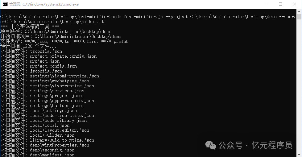 通过node font-minifier.js --project=C:\Users\Administrator\Desktop\demo --source=C:\Users\Administrator\Desktop\simkai.ttf传入工程目录和原字体路径即可。