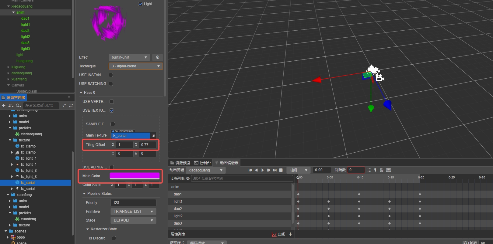 粒子特效,动画编辑器插入动画播放器播放粒子