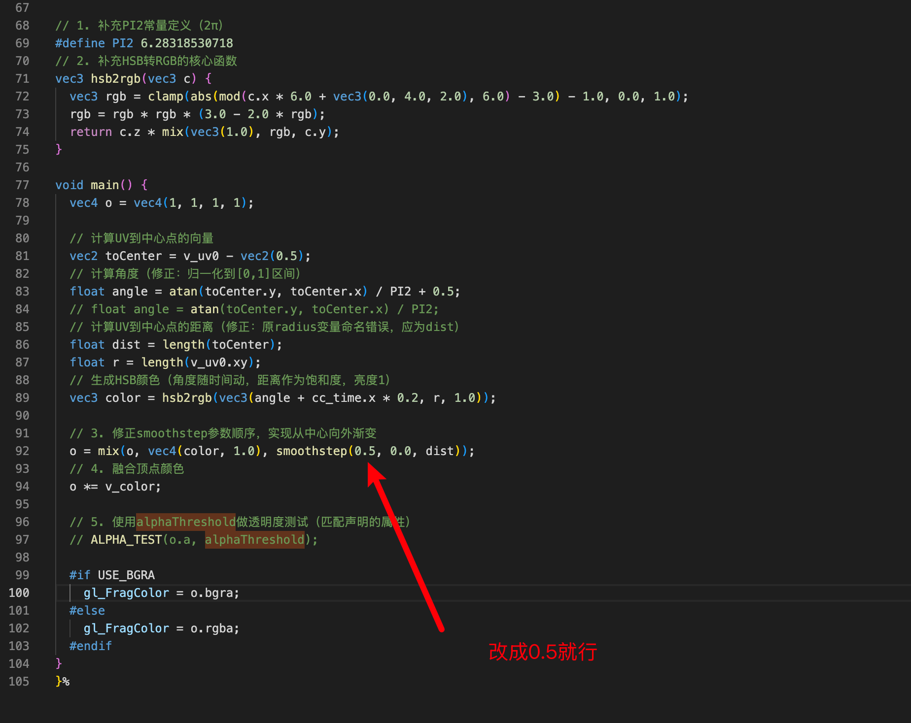 问题:同样根据的toCenter为圆心,但是颜色渲染的原点有偏移
