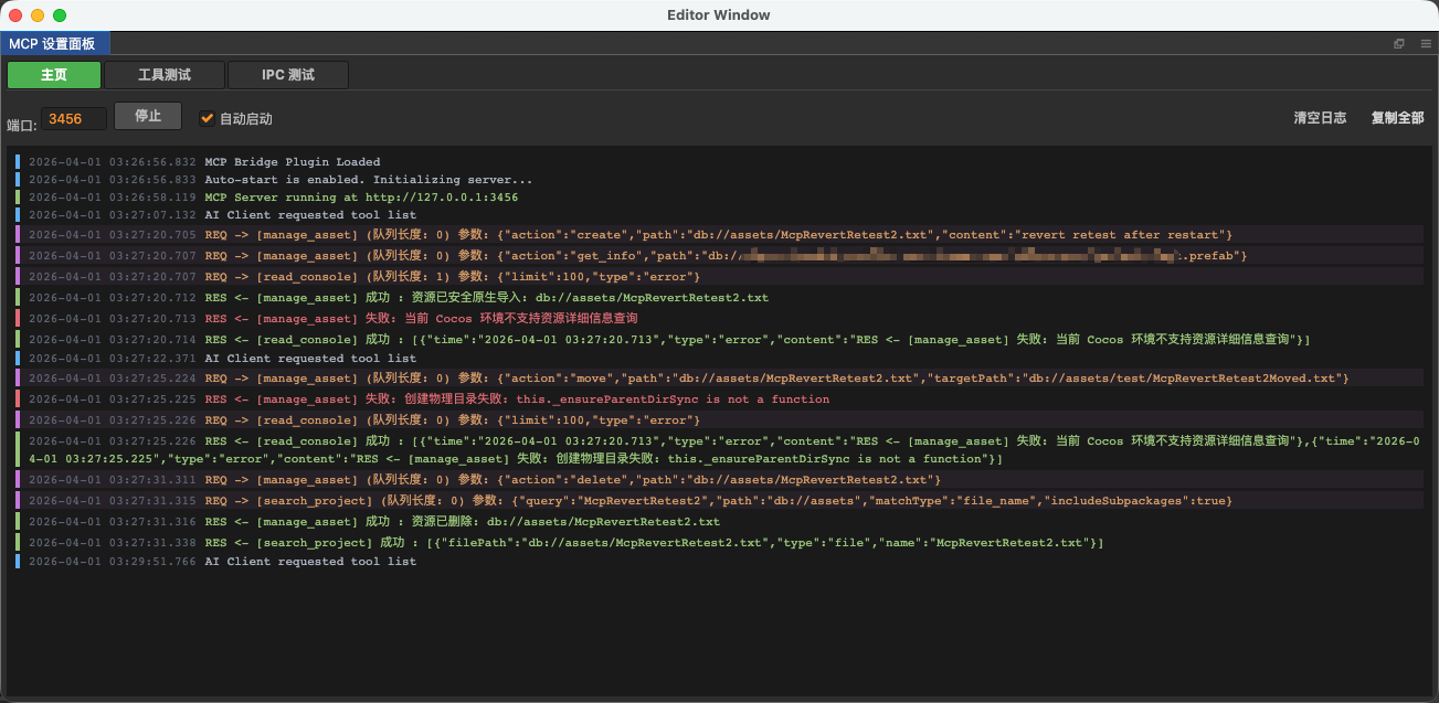 AI执行这个是要结合skill来用会合理一些 可以考虑编一个skill 这样AI才会知道怎么去使用 避免每次使用都要重新描述给AI去学习 除了有些bug外 整体用起来还可以 创建场景没啥大问题 都可以自己解决 再用下看看稳定性 自动化可以极大方便