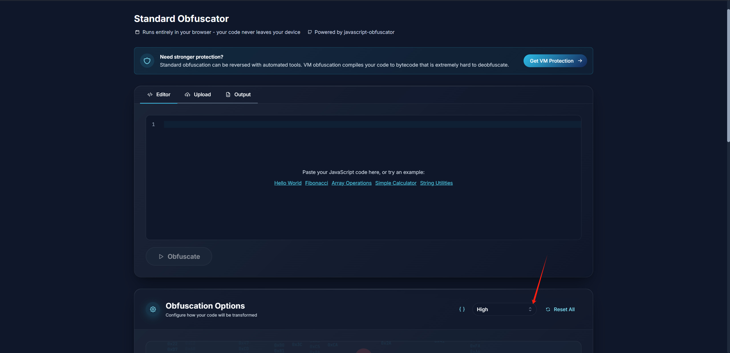 javascript-obfuscator 可以本地npm部署和运行的。 可以ai搜索一下关键词 javascript-obfuscator 和 terser 搭配使用。很方便的