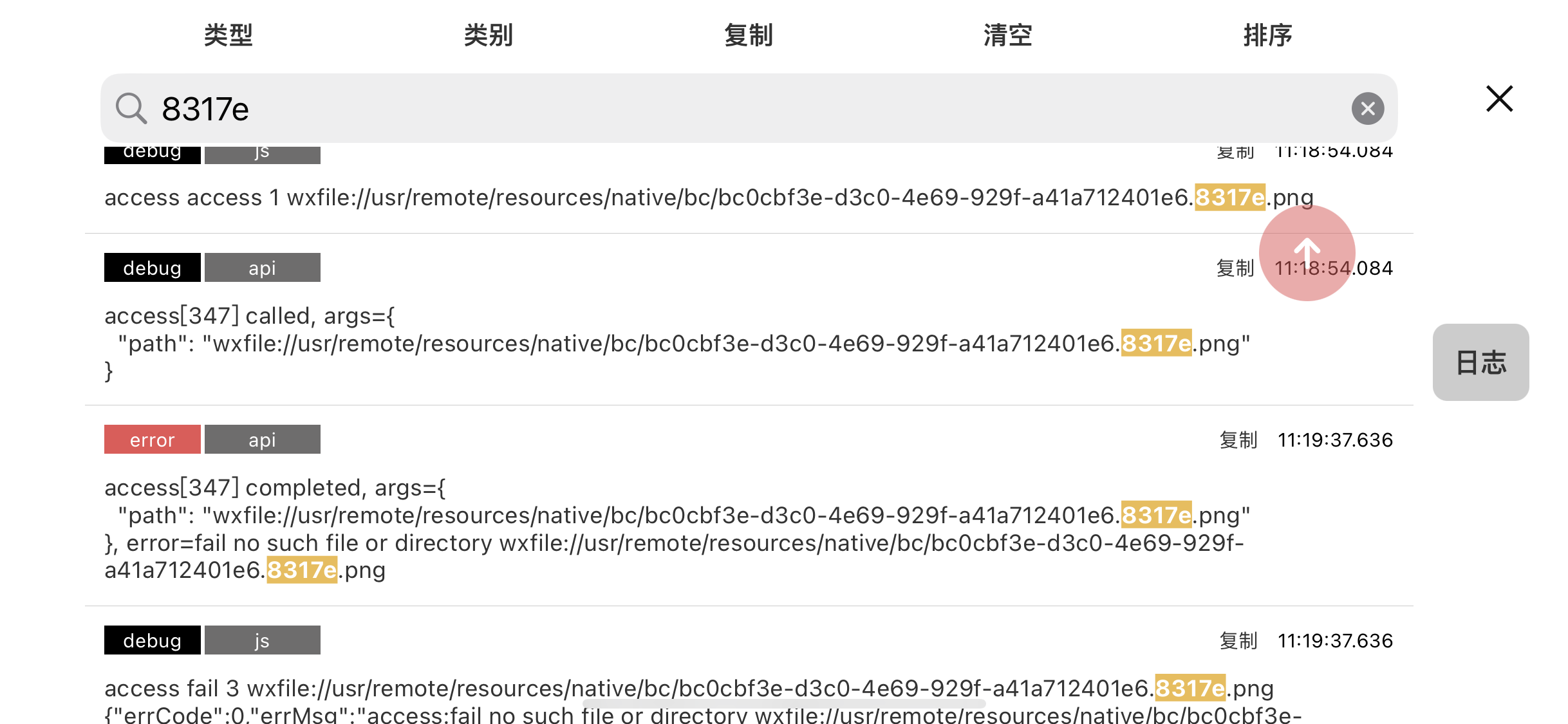 如图,18分54秒调用access判断文件是否存在,19分37秒进入失败回调access fail no such file or directory,期间本地服务没有任何请求