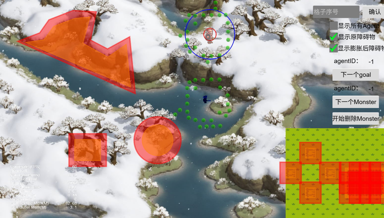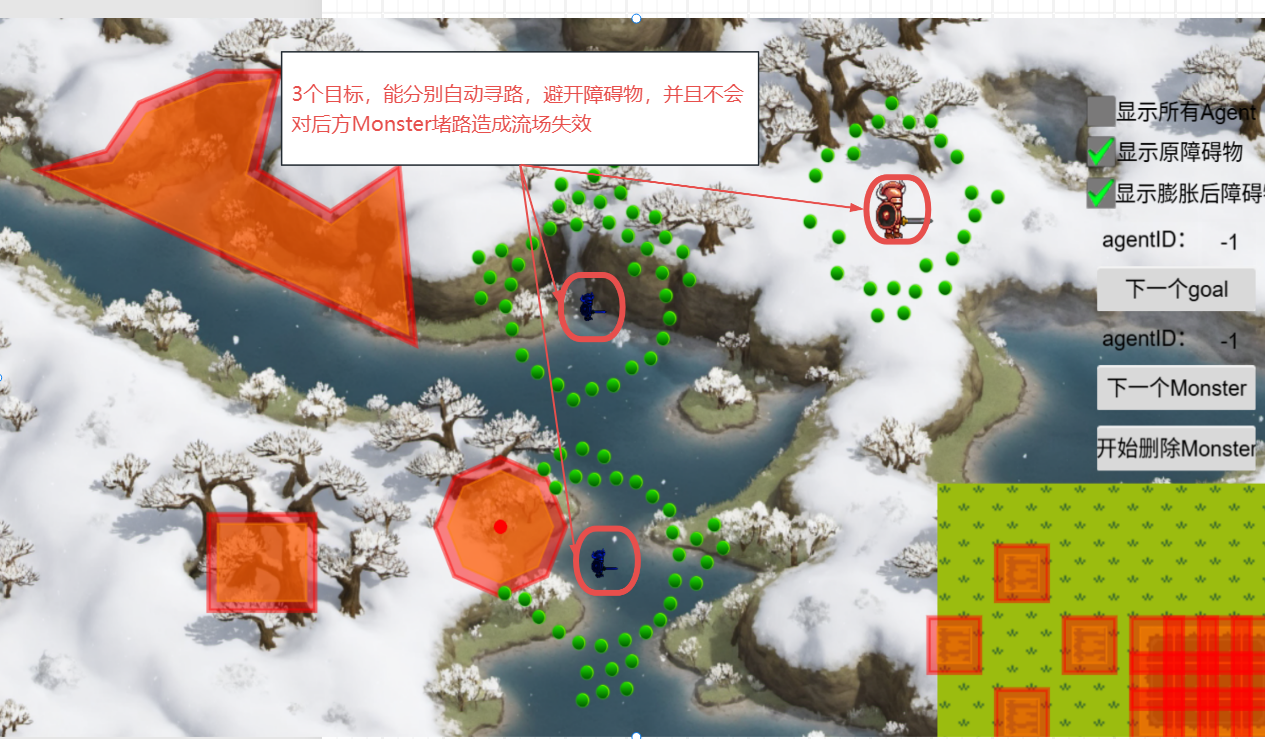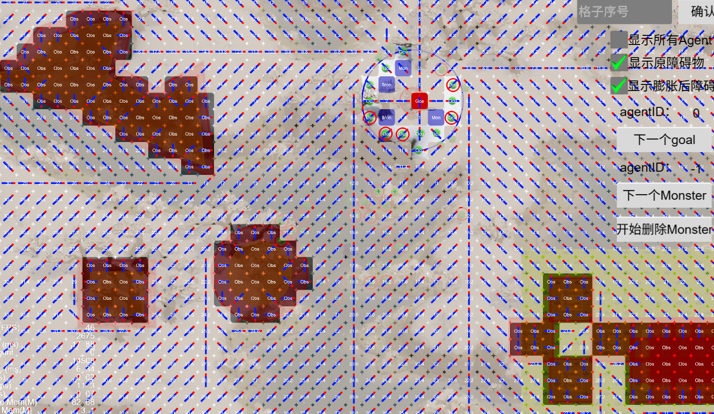 3. 可以同时支持场景多个目标,多组Monster分别对各自目标进行寻路;