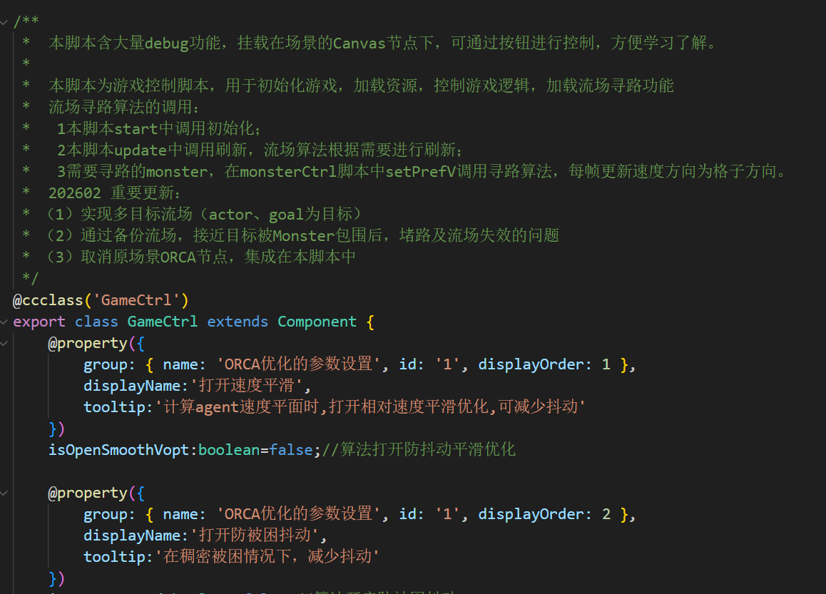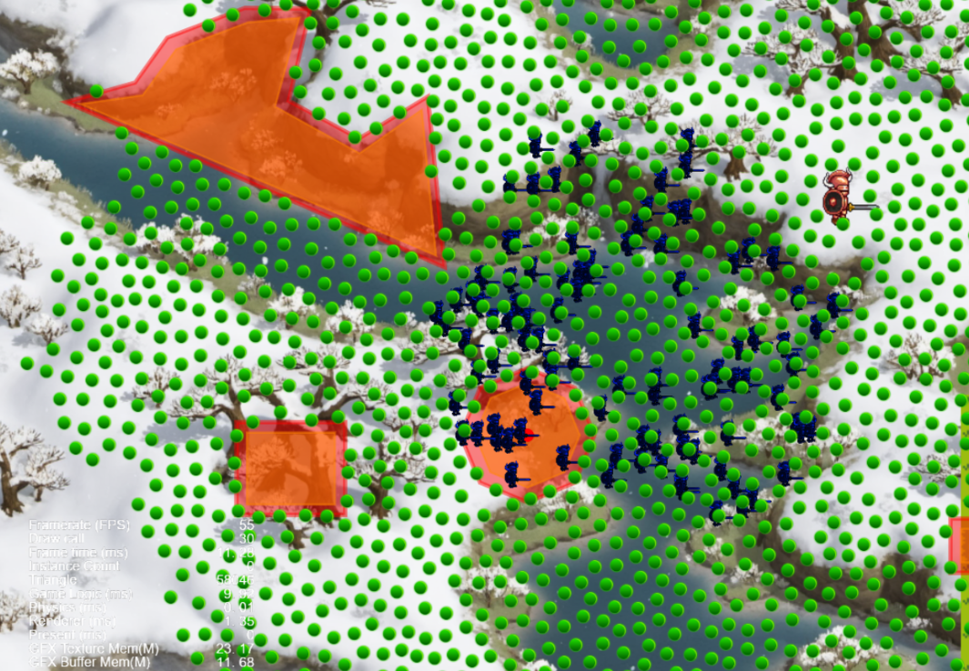 该组件源码,主要通过ORCA自动避障、多目标流场寻路算法来实现群体目标移动中的避障、寻路问题。可解决目前弹幕、割草游戏中常遇到的不同群体 在障碍物间跟踪多目标的自主移动 。并增加了 备份流场、近场占位、临时障碍物生成等算法,可靠解决了当目标被Monster包围后,堵路导致流场失效的问题。 通过简单的挂载脚本,即可实现自动识别静态障碍物、动态障碍物参与避障;识别TiledMap中的障碍物层为静态障碍物;识别地图上不规则多边形、圆形为障碍区。同时,项目集成了稠密包围情况下滤波等防抖动算法、障碍物膨胀算法、流场边界处理策略,解决了大部分群体运动问题。帮助初学者、算法开发者快速应用。