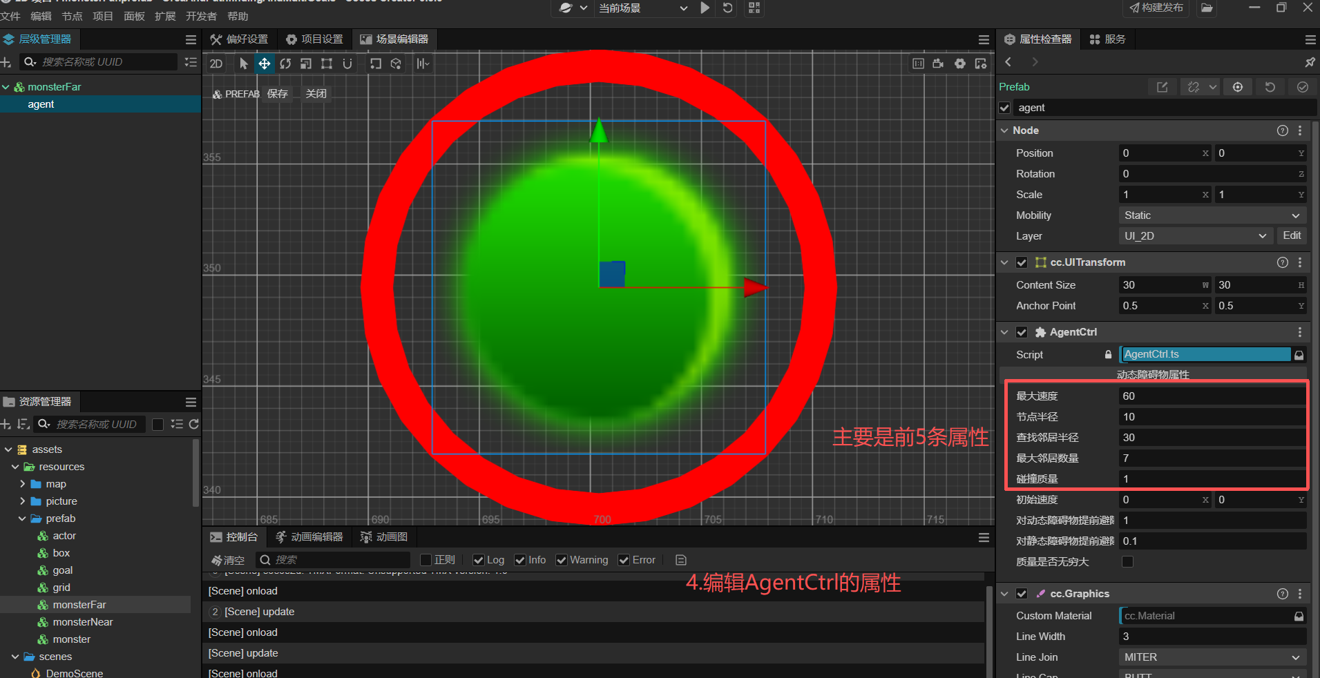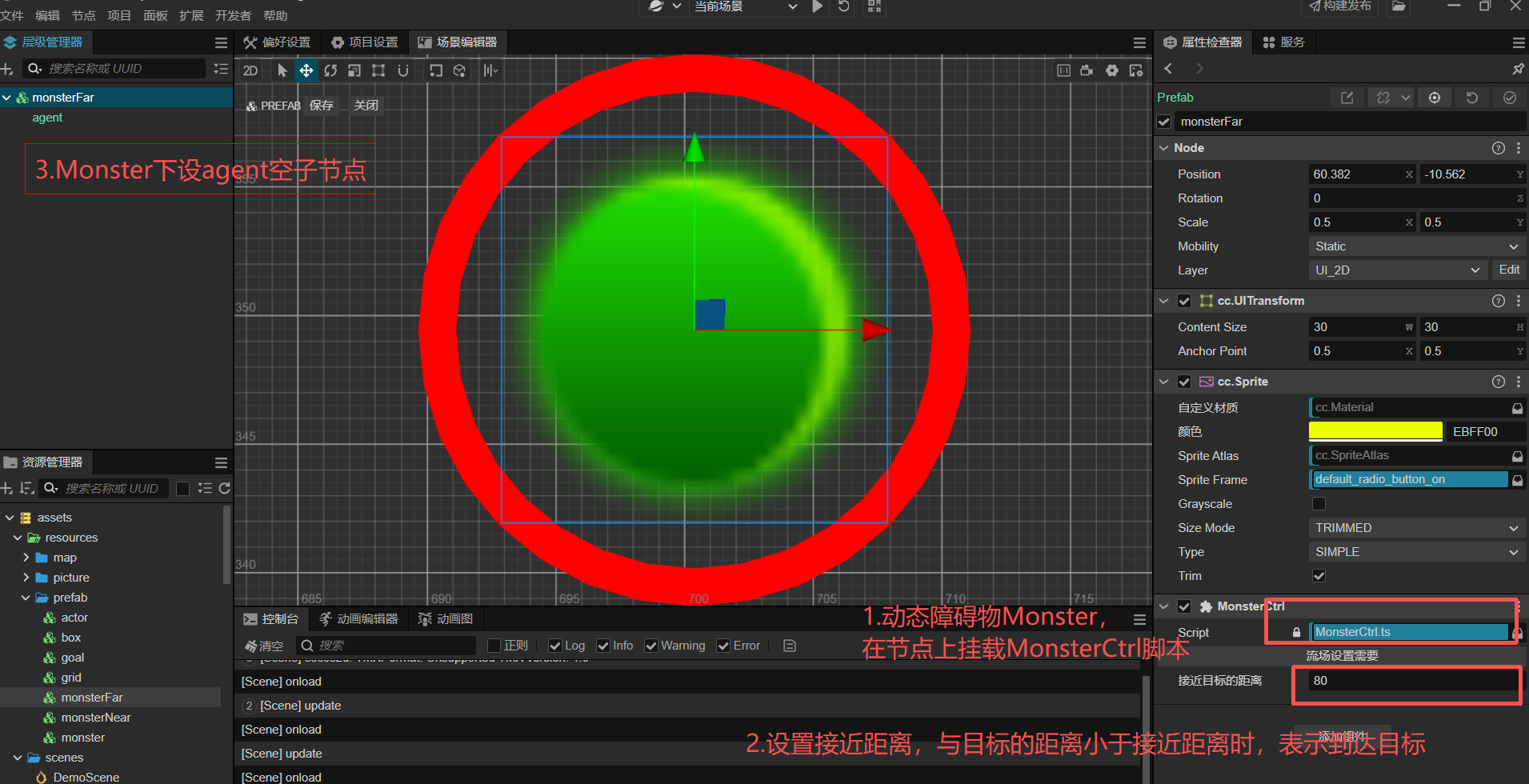 3. 在移动物体Monster下设agent空子节点;