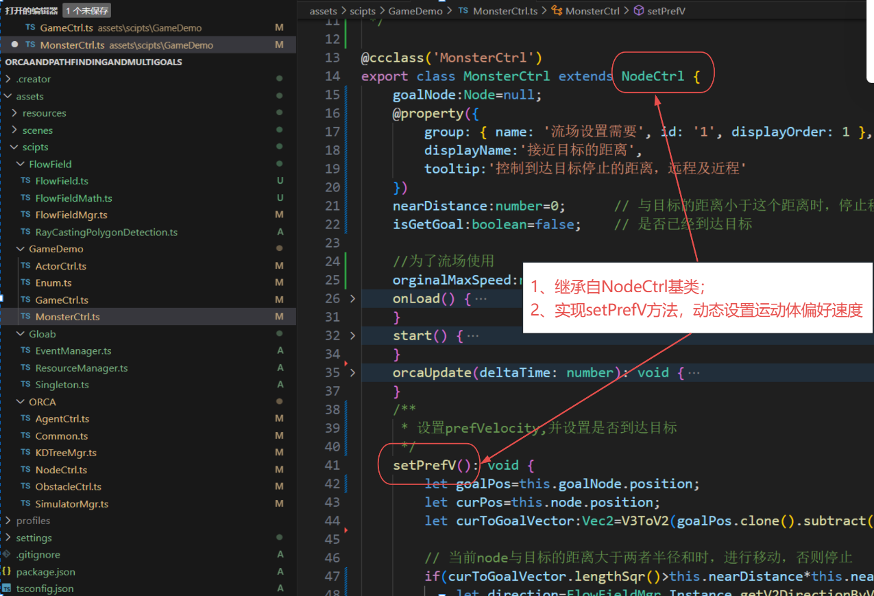 5. MonsterCtrl和ActorCtrl都是继承自NodeCtrl,在里面实现了setPrefV方法。一般建议 不需要更改本脚本。 也可根据自己需要修改。