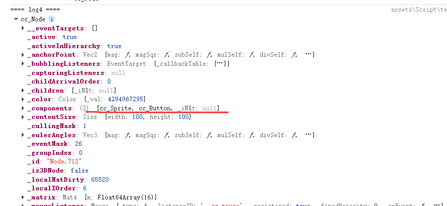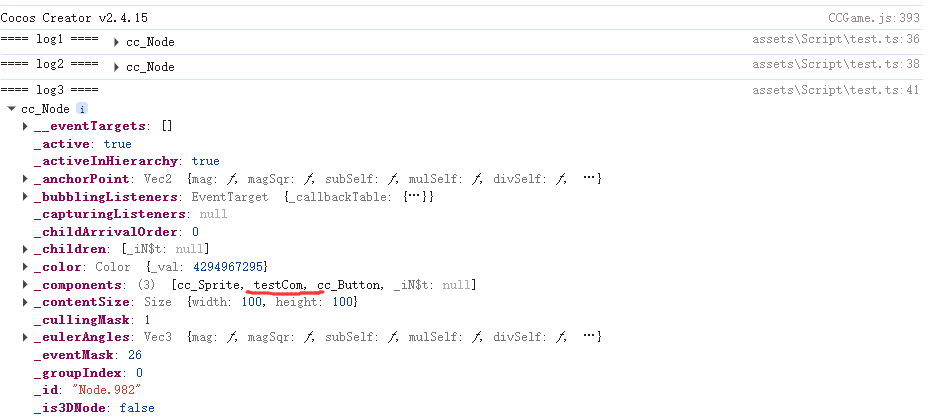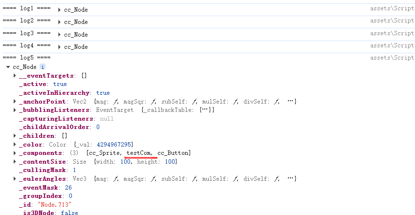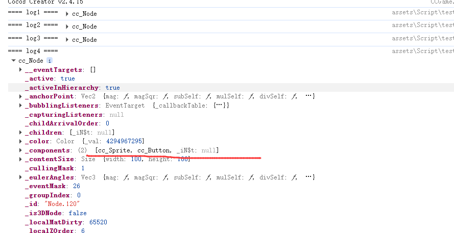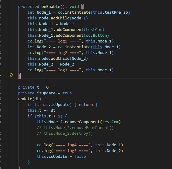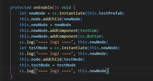 然后对Node1 动态添加两个组件 一个是button(这个不限我测试用所以加上去的) 一个是另外一个类(testCom)
