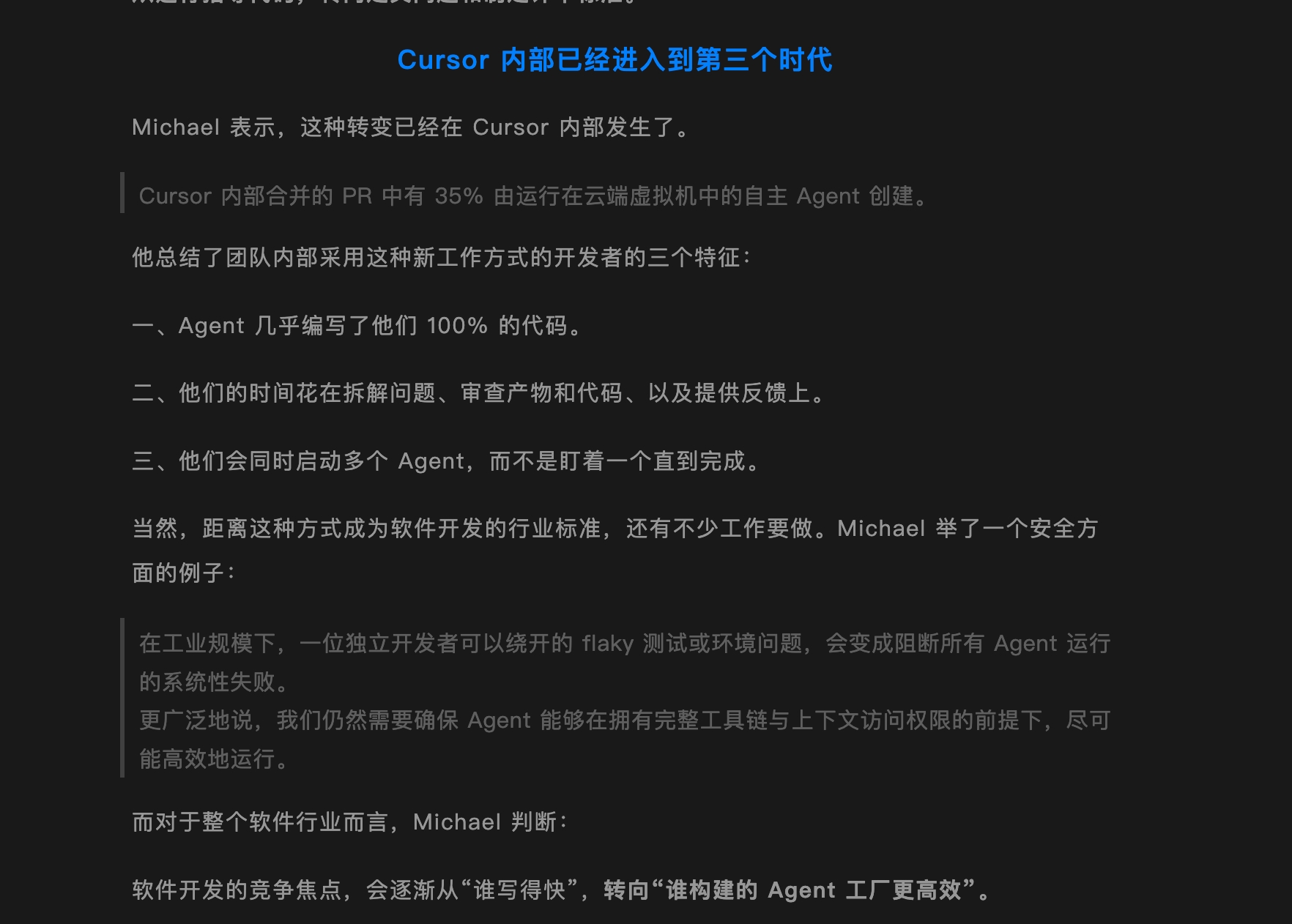 1、 Coding赛道大转向!Cursor创始人:核心定位已变!AI软件行业已进入第三个时代!