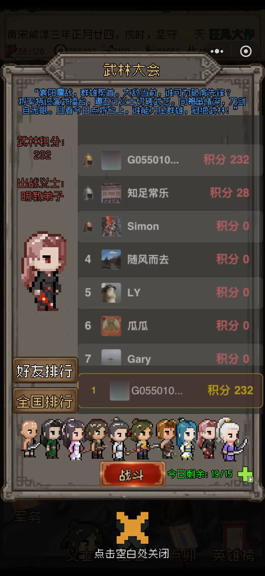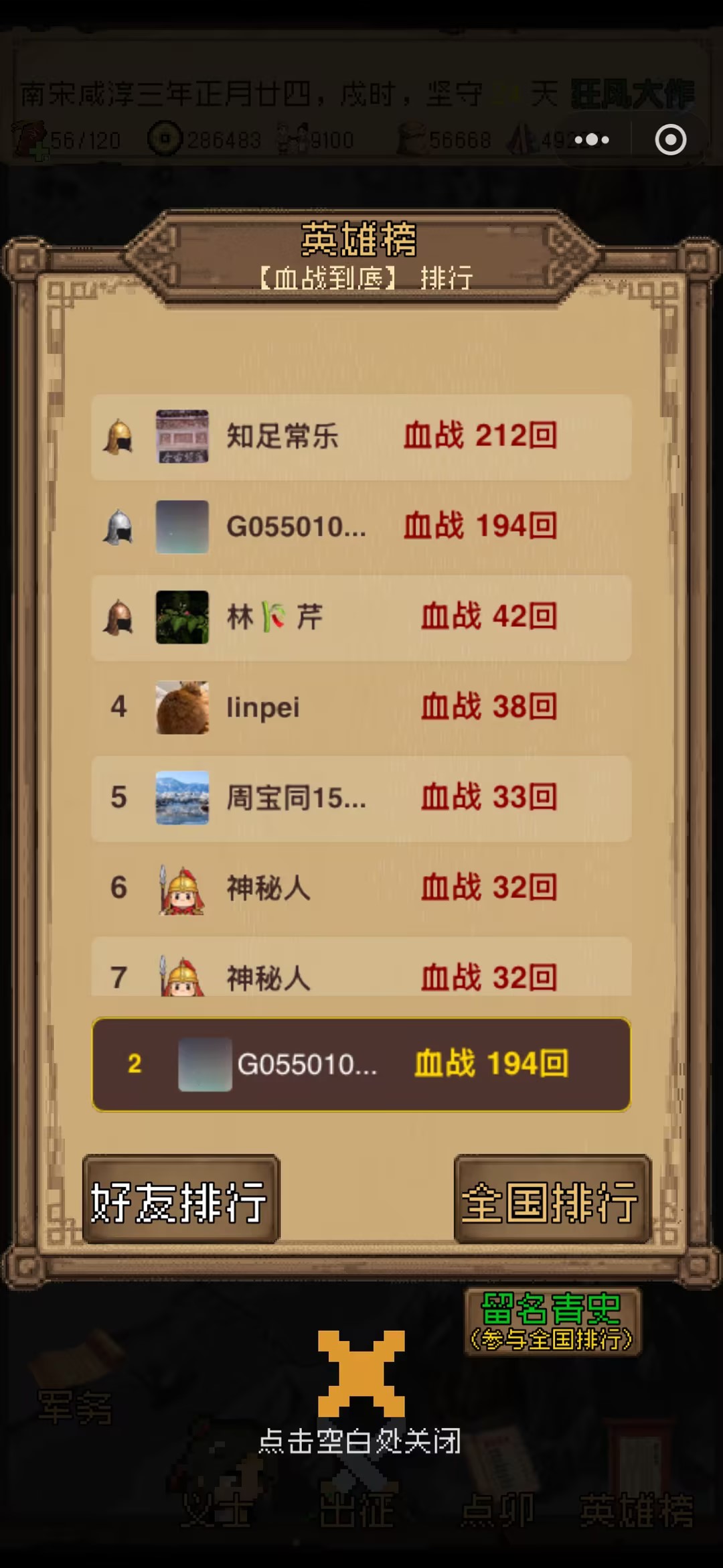 微信小游戏搜索《孤城侠影》,请大家指点一下哈