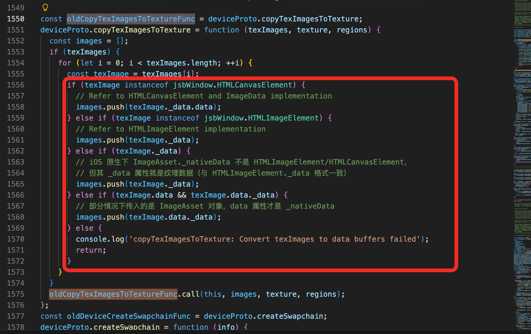 后面发现是 Cocos 引擎在 iOS 原生上的一个适配问题—— copyTexImagesToTexture 函数无法识别纹理数据类型,导致所有图片上传 GPU 失败。 copyTexImagesToTexture 函数只处理了两种类型: