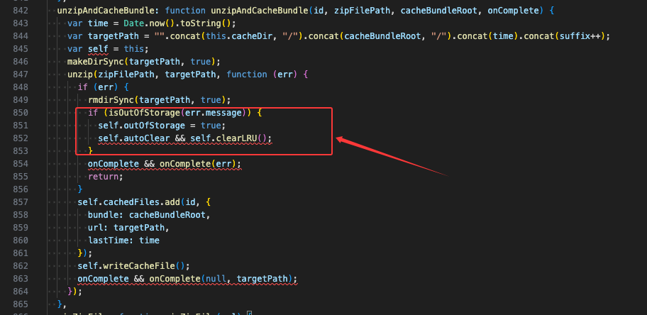 - zip解压失败,并且是不够空间的时候,那么cocos内部的 cacheManager 会触发一次缓存清理,但是会先立即回调一次失败,当然如果你有重试机制,一般3次,第二次可能就会成功了,但是只是可能。为什么呢?因为 cacheManager 触发了缓存清理,并不一定清理出足够空间给你二次重试解压。比如你的zip很大,即便 cacheManger 已经清理了一次,空出10MB,但是如果你zip超出 10MB,还是会有类似问题