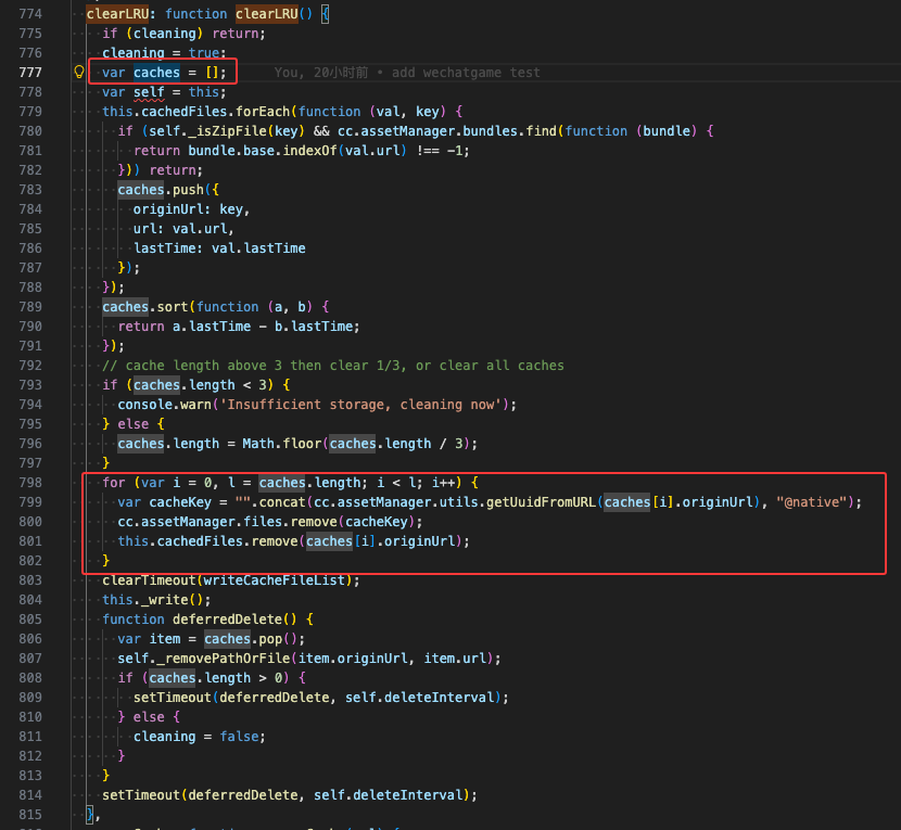 问题在于,下一次再次触发 clearLRU ,也不会记得上次这些未清理的文件,因为在加入队列的事后,实际缓存就清空了这些文件的记录。如下图红框所示。