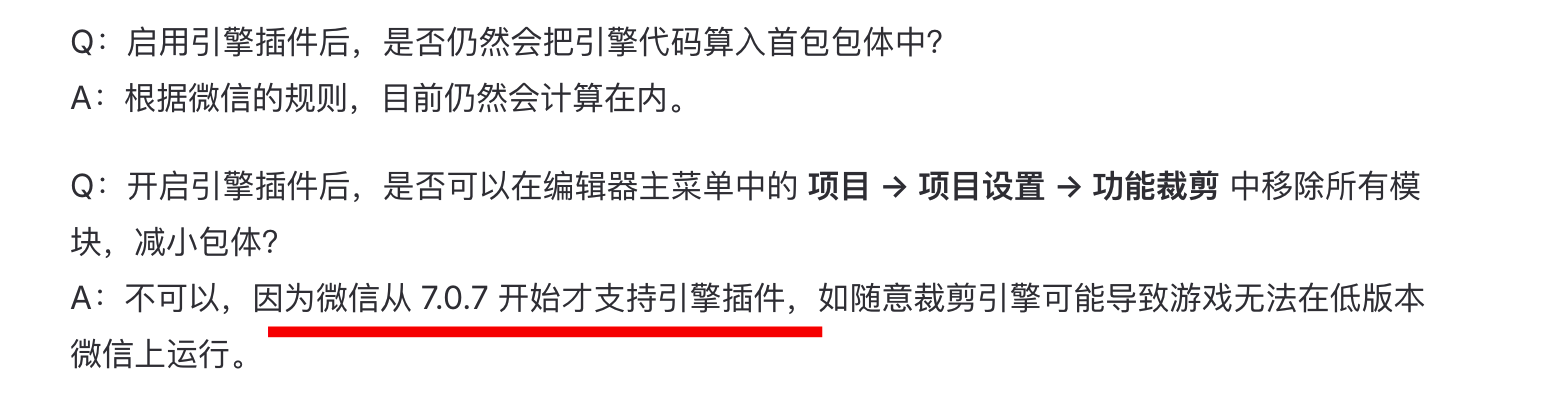 刚在文档 - 微信小游戏引擎插件使用说明里看到这么一段话: