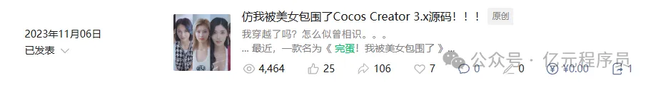 本文实战完整源码已集成到亿元Cocos小游戏实战合集2.0,内含体验链接,已经拥有的小伙伴可以直接更新。