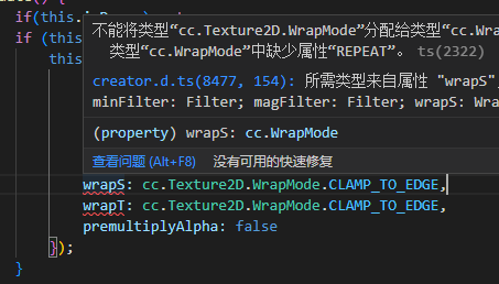 这两个wrap应该是cc.Texture2D.WrapMode类型吧,提示却是cc.WrapMode,还是我理解有误