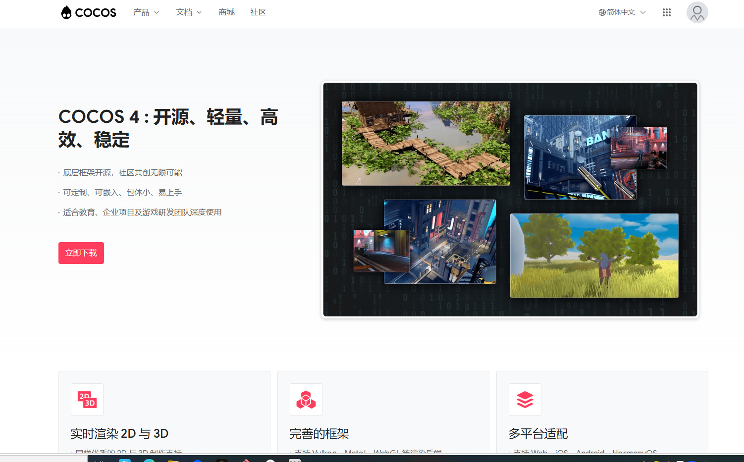 官网地址没变,还是 https://www.cocos.com/ ,Cocos Creator 下载还是这里。 给 COCOS4 单独加了一个官网,连接到 GitHub 了。