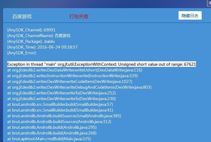 百度游戏打包失败