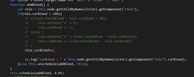 这是我做的人物的回血的效果,获取人物组件增加血量,人物血量测试的时候是500