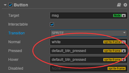 1.新建了一个按钮,Transition设为SPRITE,给每一个状态赋一张图片