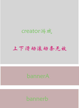 用creator按照官方的demo做了个"游戏"",发布于web mobile上运行,现在的问题是,一打开游戏就会全屏显示的,而如今我要在此动画的加入一些banner,按照常理说,超出当前屏幕高度,向下滑动的话会出现滚动条,来显示超出的内容的,可是在动画显示区域内的,滑动的动作好像没有任何效果,(像是被禁用了滑动),但是滑动后加的banner则可以.新手才接触,请教如何处理这一问题,谢谢