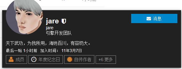 Jare的编码效率和代码质量一直非常稳定,其他这个大那个小的我就不关心了,哈哈