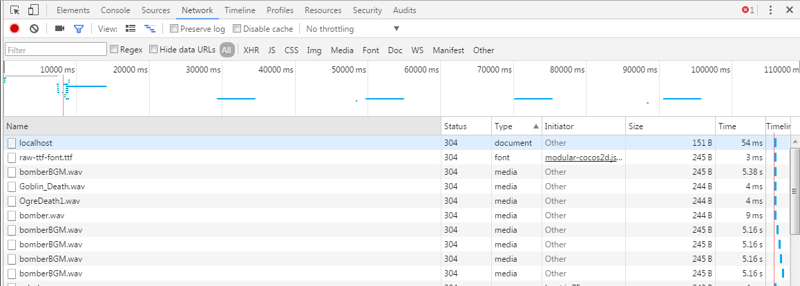 我加载了两个音频文件,分别为mp3和wav格式,其中wav格式音频播放完成之后再次循环播放时,还会继续加载这个音频文件,而MP3则不会重复加载,请问大神们这是为什么?如图