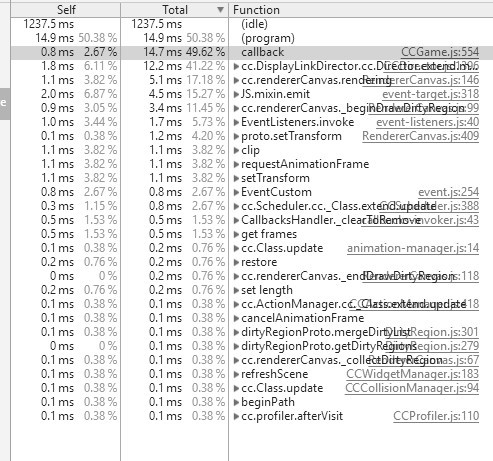 然后我打开了默认的helloworld程序,在canvas根节点同样方式输出时间,在一次卡的周期内,卡前50来次16ms,卡的一帧为一次30-40ms。