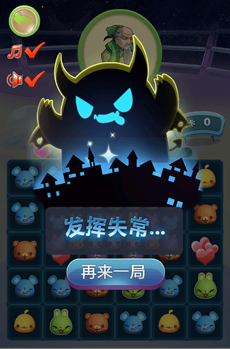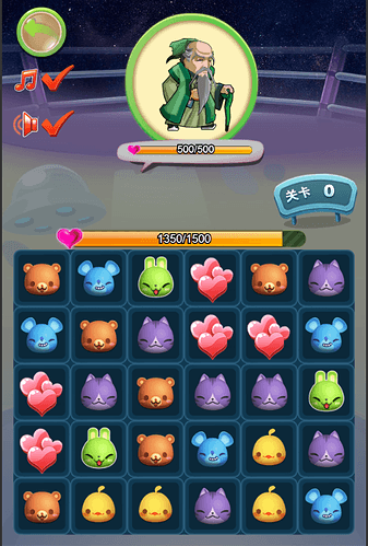 整体玩法介绍:玩家和Boss对战的玩法,每个关卡每次Boss打出固定的伤害,玩家打出的伤害是根据转出的效果计算的(少于三个糖果可以消除的时候,不计分)