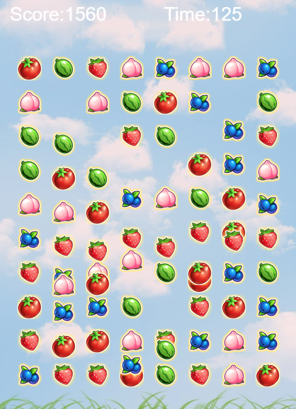 补充。当完成一次消除后其余水果按顺序下落,这个时候再在下面消除一次位置会混乱。不知道你有没有这个问题。