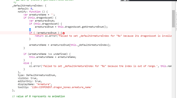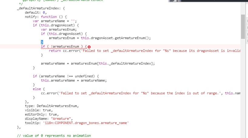 然后 这个位置 报错 检查 一下 getAnimsEnum: CC_EDITOR && function (armatureName) {…}这里会调用 这个方法 但是 这个方法 定义了CC_EDITOR