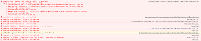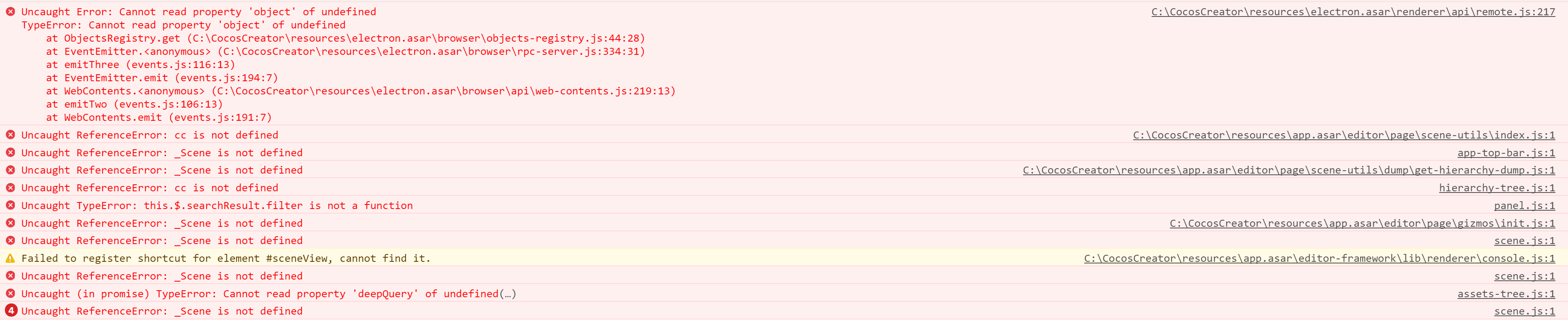 1.4.0 beta2, Windows。有时候按Ctrl+R刷新编辑器会白屏并报下面的错误,再次按下Ctrl+R才可以: