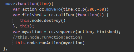我单步跟踪进去帮你看一下,你的monster节点初始坐标是462,384(就是你的prefab根节点的初始坐标)。runAction的时候会把这个记录为初始坐标,并且cc.moveTo并不是一定移动到目标坐标,而是计算之后变成moveBy。目标点(300,-30)在(462,384)的左下角,节点按cc.moveBy(time, 300-462, -30-384)往左下角移动了。但是如果runAction的动作超过一个,好像(没有认真看,推测的)就不会直接在初始化时记录节点坐标,而是在开始运动时记录(这时你已经设置position为0,0了)。因此不是你启不启用回调的问题,finished换成其它action也一样。所以应该在runAction之前设置好坐标。