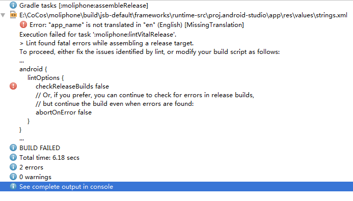 Unable to open ‘E:\CoCos\phone\build\jsb-binary\frameworks\runtime-src\proj.android-studio\app\build\outputs\apk\phone-release-unaligned.apk’ as zip archive