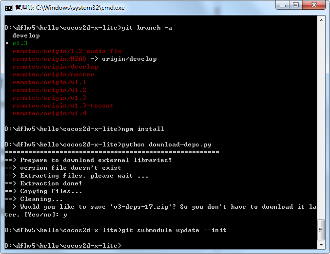 从github上弄的engine 和 cocos2d-x-lite 用的是v1.3分支,都按文档上的操作了