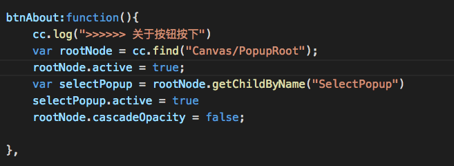 但是我想通过按钮来控制这个弹窗的显示时,父节点(黑色背景)的透明度又影响到了子节点(和图1一样),btn响应的时候我用了下面代码