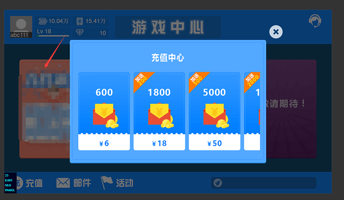 如图所示,我打开了充值界面,界面最底层是一个半透明的黑底。
