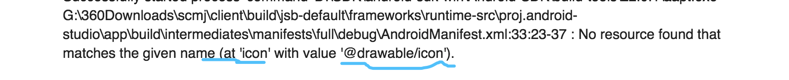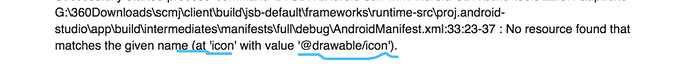 G:\360Downloads\scmj\client\build\jsb-default\frameworks\runtime-src\proj.android-studio\app\build\intermediates\manifests\full\debug\AndroidManifest.xml:33:23-37 : No resource found that matches the given name (at ‘icon’ with value ‘@drawable/icon’).