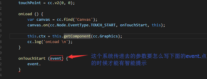 无论写cc.Event 还是写cc.Event.TouchEvent在回调函数里event.点的时候都没有touch这个属性提示,有一些别的提示。然后我看了下creator.d.ts文件,好像没找到能提示touch这个属性的代码,是不是creator.d.ts写的不全啊