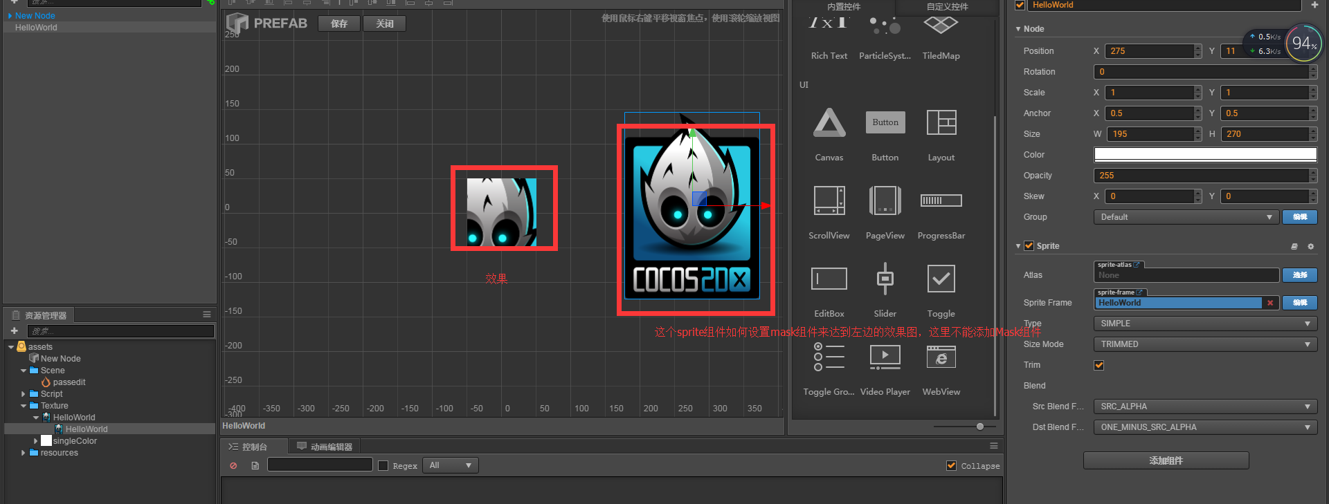 直接在Sprite上面添加一个Node父节点,在这个父节点上添加mask组件,类似这样