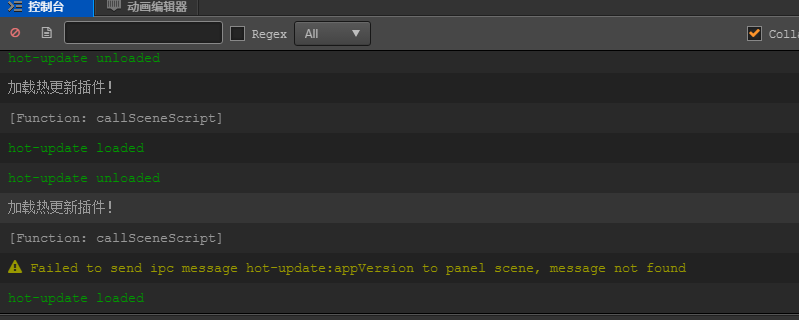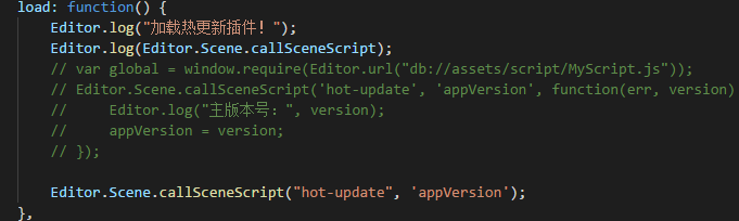 Editor.Scene.callSceneScript 在插件的main.js脚本中 的 load 中调用package.json中定义的场景脚本中的方法,报如下警告,貌似调用不到,是使用方式不对么?