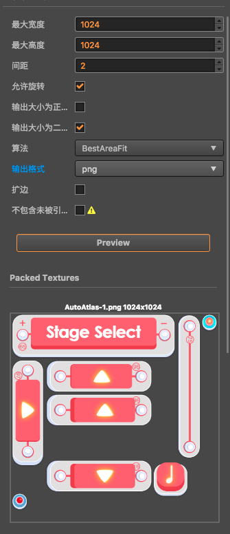 )后,点击"Preview"可以看合图效果,然后在构建时,会在resource目录下生成对应的合图