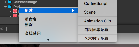 要生成合图,直接在需要的目录里右键->新建->自动图集配置,选中生成的文件可以在属性编辑器里面做一些配置,