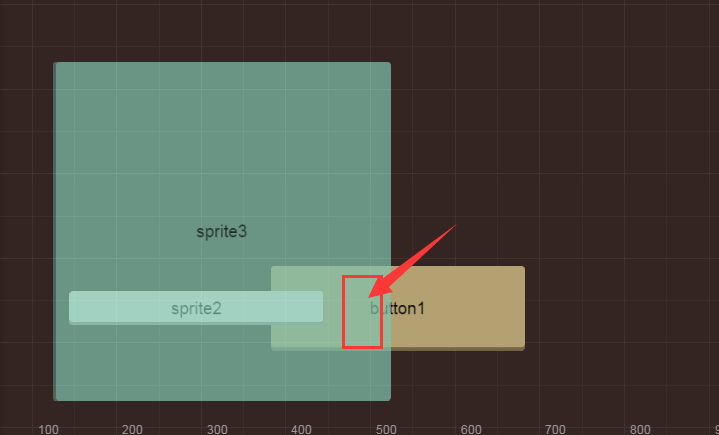 添加全局监听,取得点击的坐标点,遍历要处理的对象,判断坐标在不在矩形范围内,然后sprite2与button1分别做各自的处理。