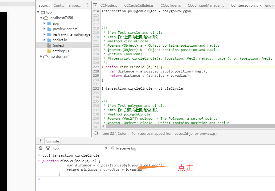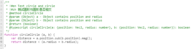 碰撞组件里面用到的方法,你可以去搜搜他们碰撞系统的代码 cc.Intersection里面是碰撞检测的一系列方法