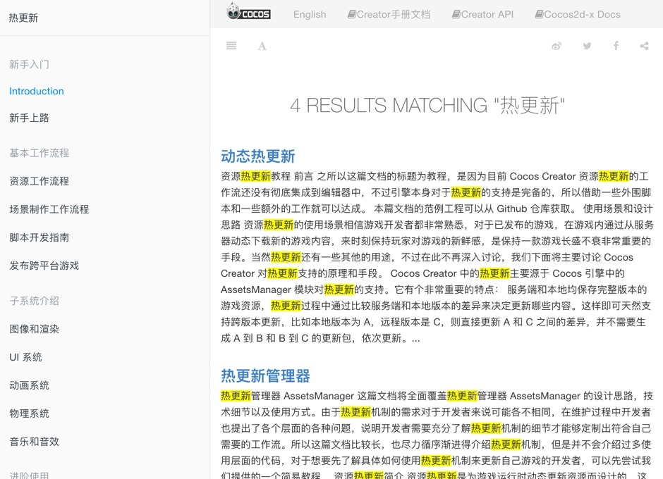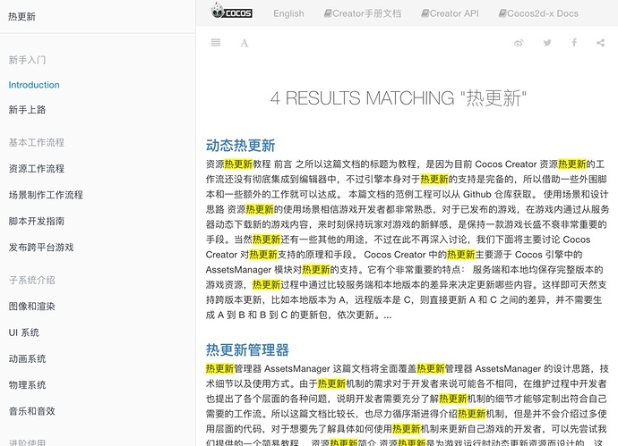 新版文档全面强化了搜索功能,在左侧搜索栏输入任何你想了解的话题,会立刻在全部文档正文和标题中对搜索内容进行匹配并返回结果。