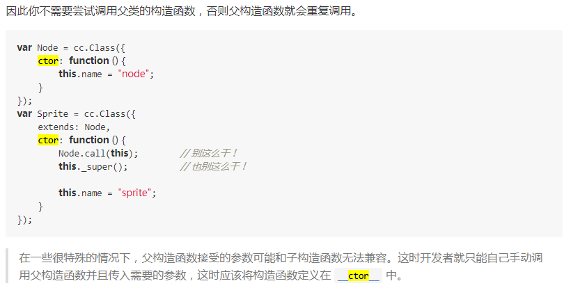// 文档中提到要调用父类的构造函数可以写在 __ctor__ 中。。