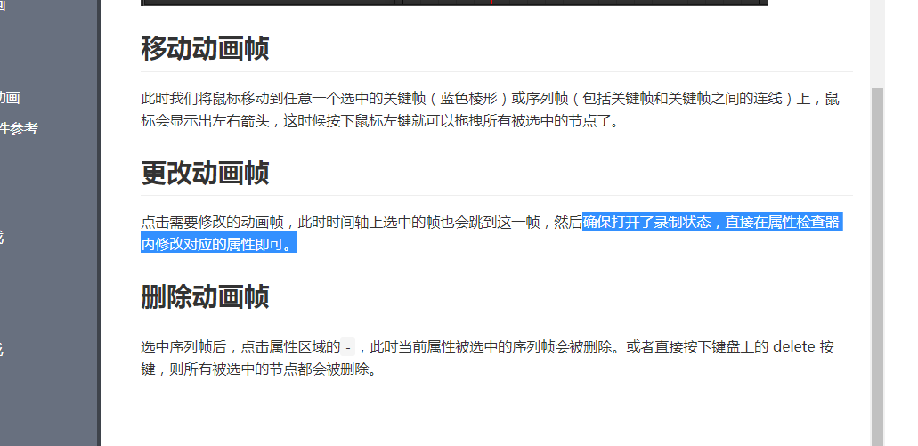提出这个问题的原因是这里说的是当选中任何一个节点(不管是帧动画曲线上的节点,还是其他曲线上的节点),都可以在右侧属性栏里直接修改。。。。。。。